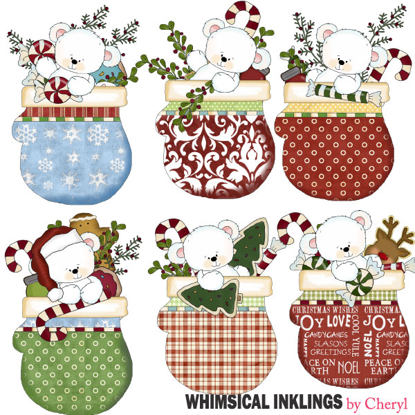 polar,bear,mitten,christmas,winter,Cheryl Seslar killian, whimsical inklings,etsy,teachers pay teachers,design bundles,embroidery,clip art,scrap,craft, card,diddybag.com