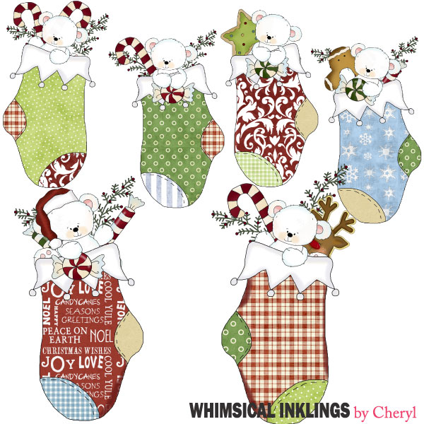 polar bear,bear,stocking,christmas,Cheryl Seslar killian, whimsical inklings,etsy,teachers pay teachers,design bundles,embroidery,clip art,scrap,craft, card,diddybag.com