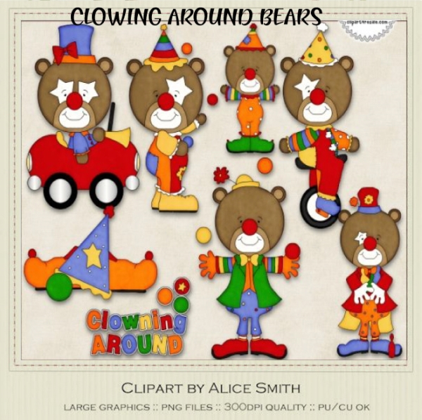 Bears,Carnival,Circus,Clown,shoe,hat,nose,clipart,clip art,alice smith,diddybag,digitize,embroidery,scrap,paper