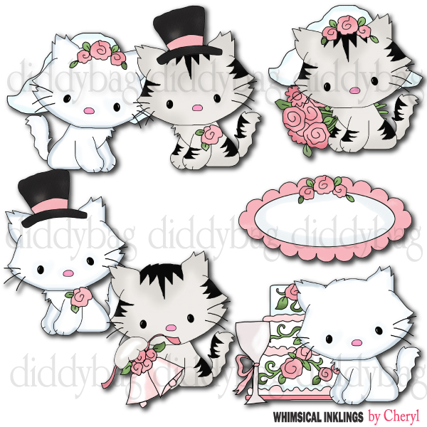 Cats,Kittens,wedding,bride,groom,clipart, clip art,etsy,teachers pay teachers,design bundles,embroidery,clip art,scrap,craft, card,diddybag.com