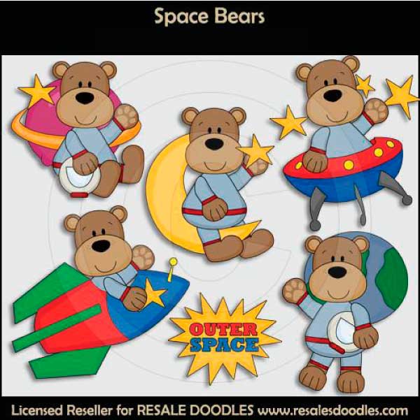 bear,space,ship,planet,moon,star,resale doodles,clipart,clip art,embroidery,scrap,card,craft