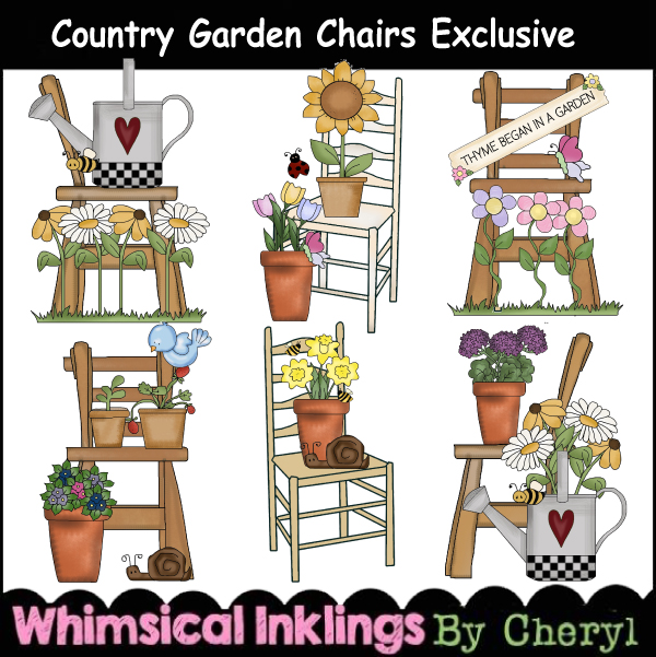 country,farm,flower,floral,chair,pot,watering can,cheryl seslar killian,whimsical inklings,etsy,teachers pay teachers,design bundles,embroidery,clip art,scrap,craft, card,diddybag.com