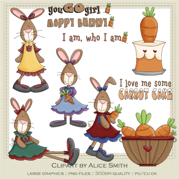 bunny,spring,carrot,rabbit,spring,garden,trina clark walker,clipart,clip art,embroider,scrap,card,paper