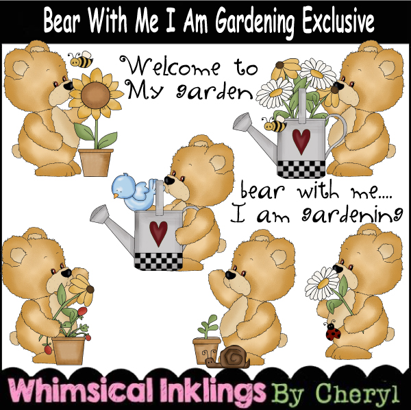 Bears,Flowers,Garden,water,pot,bee,cheryl killian,embroidery,scrapbook,card,craft,diddybag
