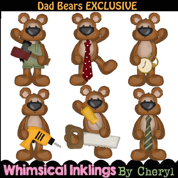 Bear,Dad,Father Day,Men,cheryl seslar killian,whimsical inklings,etsy,teachers pay teachers,design bundles,embroidery,clip art,scrap,craft, card,diddybag.com