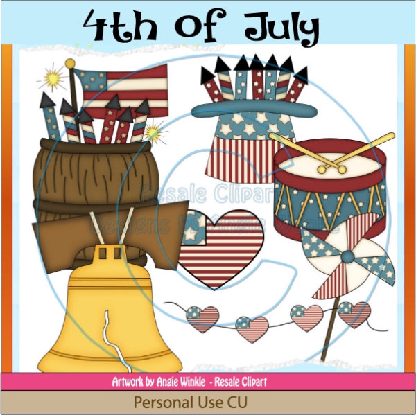 america,usa,4th,fourth,flag,firework,hat,flag,liberty,bell,drum,clipart,clip art,angie winkle,resale,clipart,diddybag