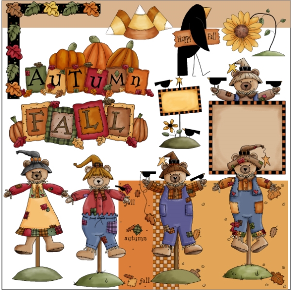 bear,pumpkin,fall,autumn,scrap,crow,scarecrow,flower,candy,corn,clipart