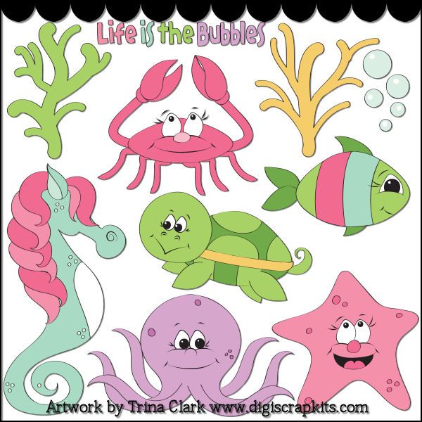 Sea Life, coral, crab, seahorse, burtle, fish, bubbles, octopus, starfish,trina.clark,walker,etsy,busy hands,etsy,embroidery,clip art,scrap,craft,card,diddybag.com