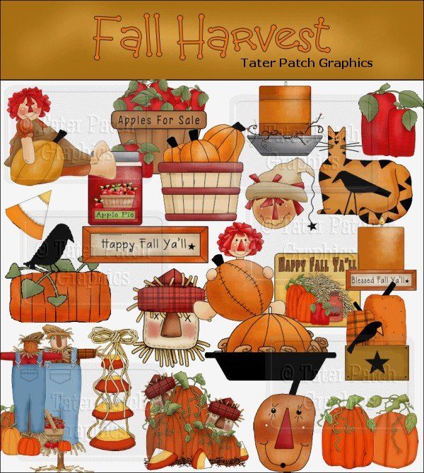 Fall,Halloween,Occ,Thanksgiving,pumpkin,scarecrow,pie,crow,corn,annie,apple,clipart,clip art, tater patch,diddybag