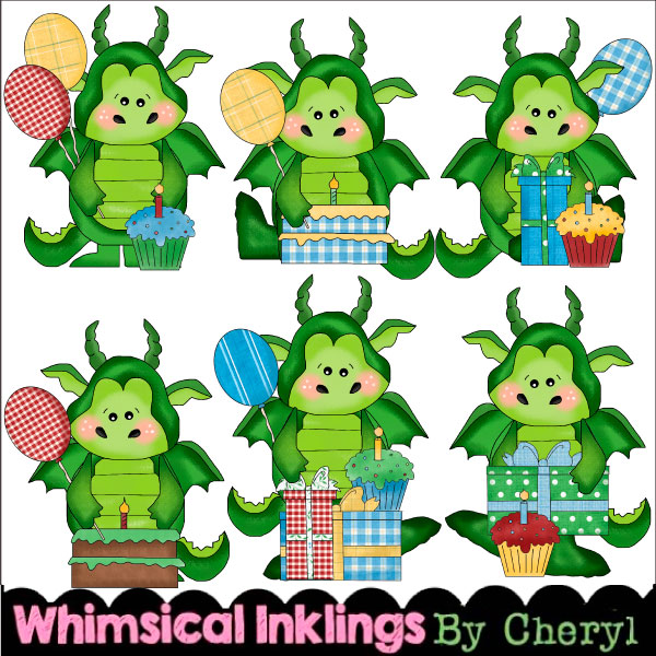 Birthday,Dragons,cheryl seslar killian,whimsical inklings,etsy,teachers pay teachers,design bundles,embroidery,clip art,scrap,craft, card,diddybag.com