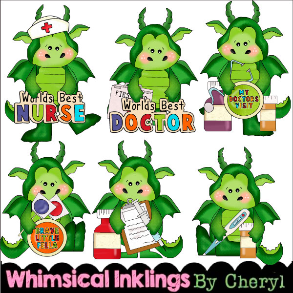 Dragons,Get Well,Sick,cheryl seslar killian,whimsical inklings,etsy,teachers pay teachers,design bundles,embroidery,clip art,scrap,craft, card,diddybag.com